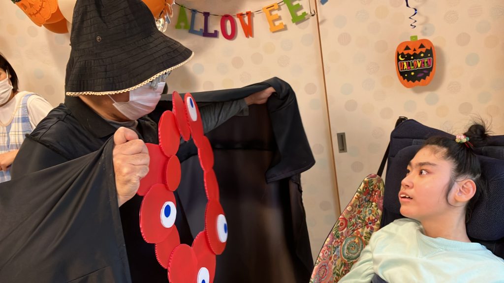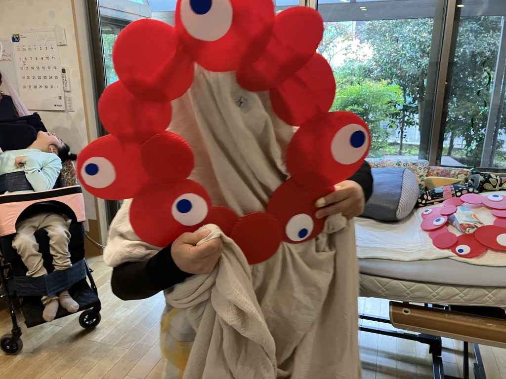 2025年11月29日 / 最終更新日時 : 2025年12月1日 chisanatane_noke たねblog ハロウィン🎃 ハロウィン用のバルーンをいただいたので急遽、スタッフが仮装しました。 ミャクミャクさん登場! 利用者さんの周りを踊りながら回りました。 素敵なハロウィンになりました。