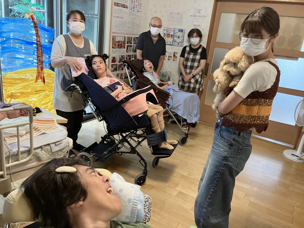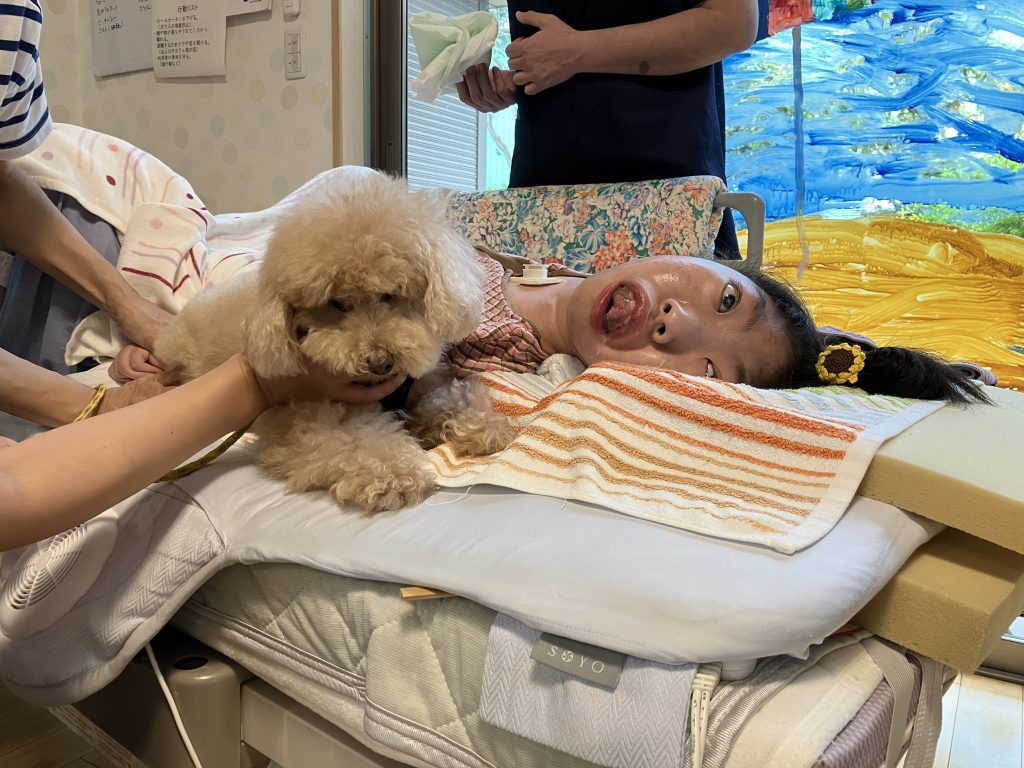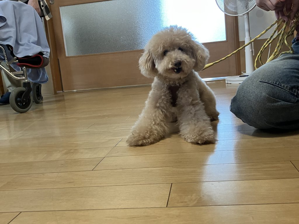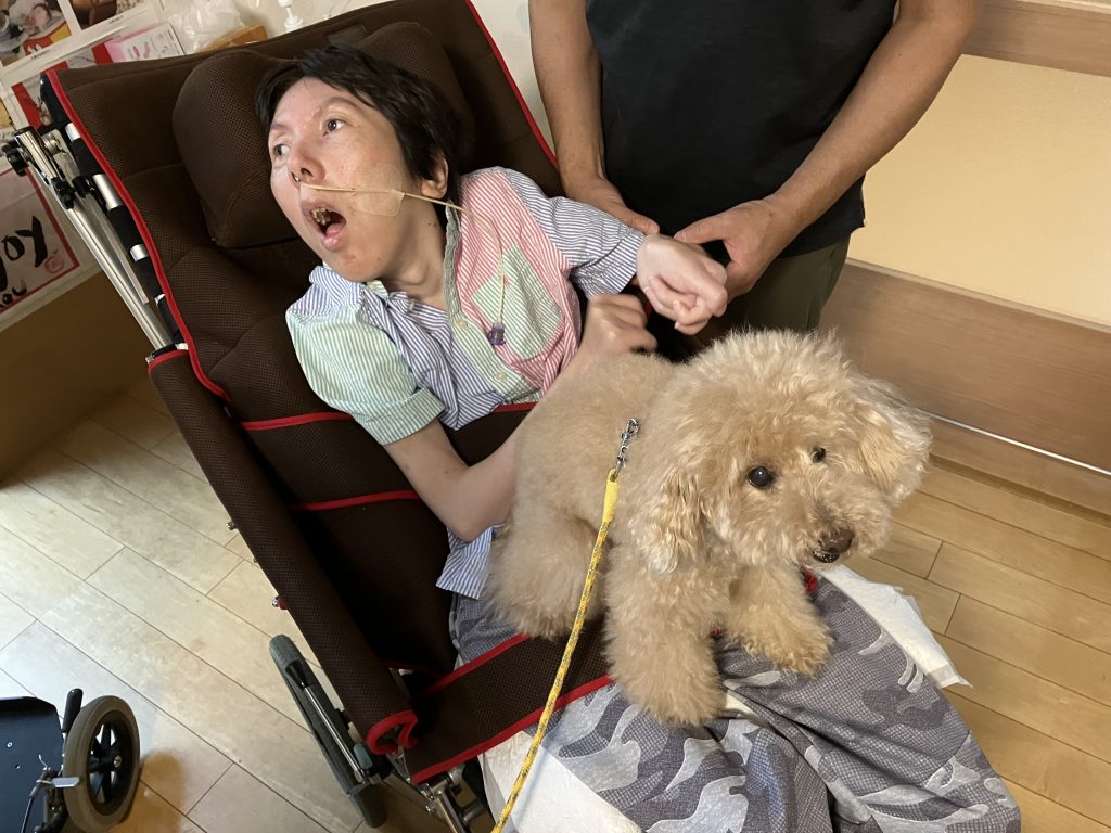事前にご家族にアレルギーの有無や犬に触れてもよいか、など確認した上で利用者の皆さんに普段とは違う特別な体験をしてもらうことが出来ました。